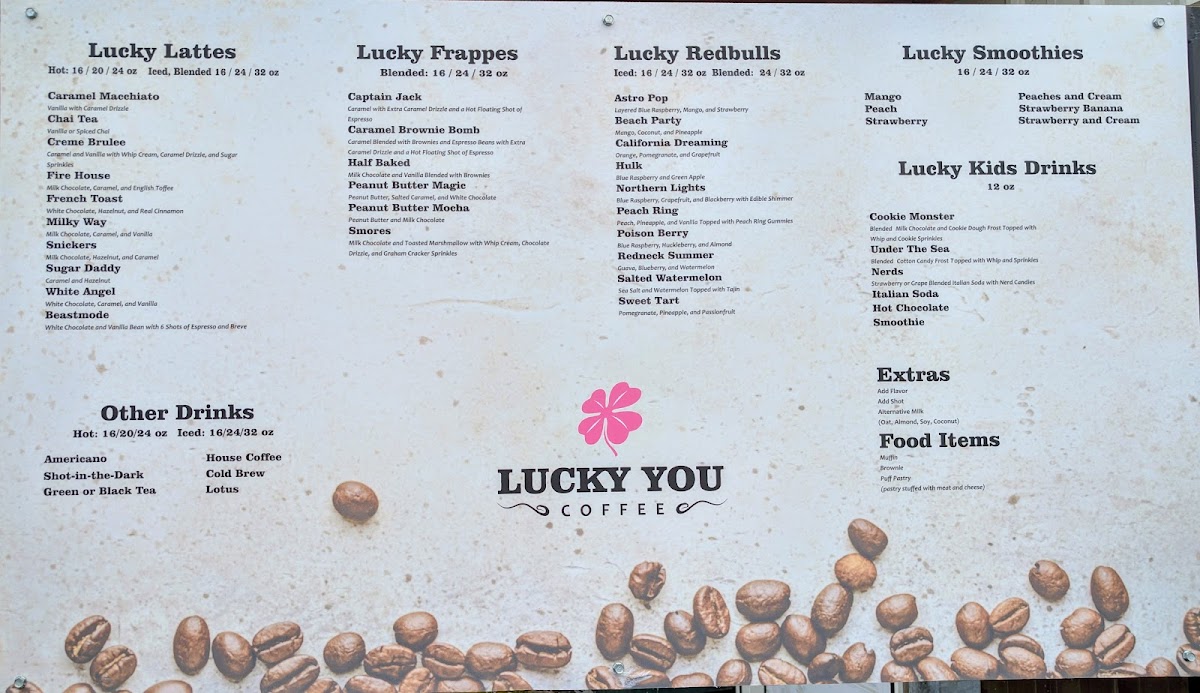 Lucky you Coffee Menu